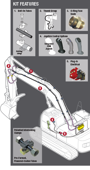 HKX Thumb kits include all the components, instructions and support needed for complete installations. HKX kits are engineered to seamlessly integrate with your excavator’s hydraulic system as well as provide accurate hydraulic power to your attachments. Standard kits are available for current and out-of-production excavators and almost every attachment on the market.