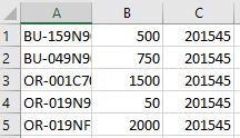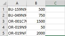 Using the Parts Upload Format your file with catalog part numbers in column one, and quantities in column two, leaving out all header names. (as per example below) Files must be saved with the .csv file type in excel in order to be uploaded. |